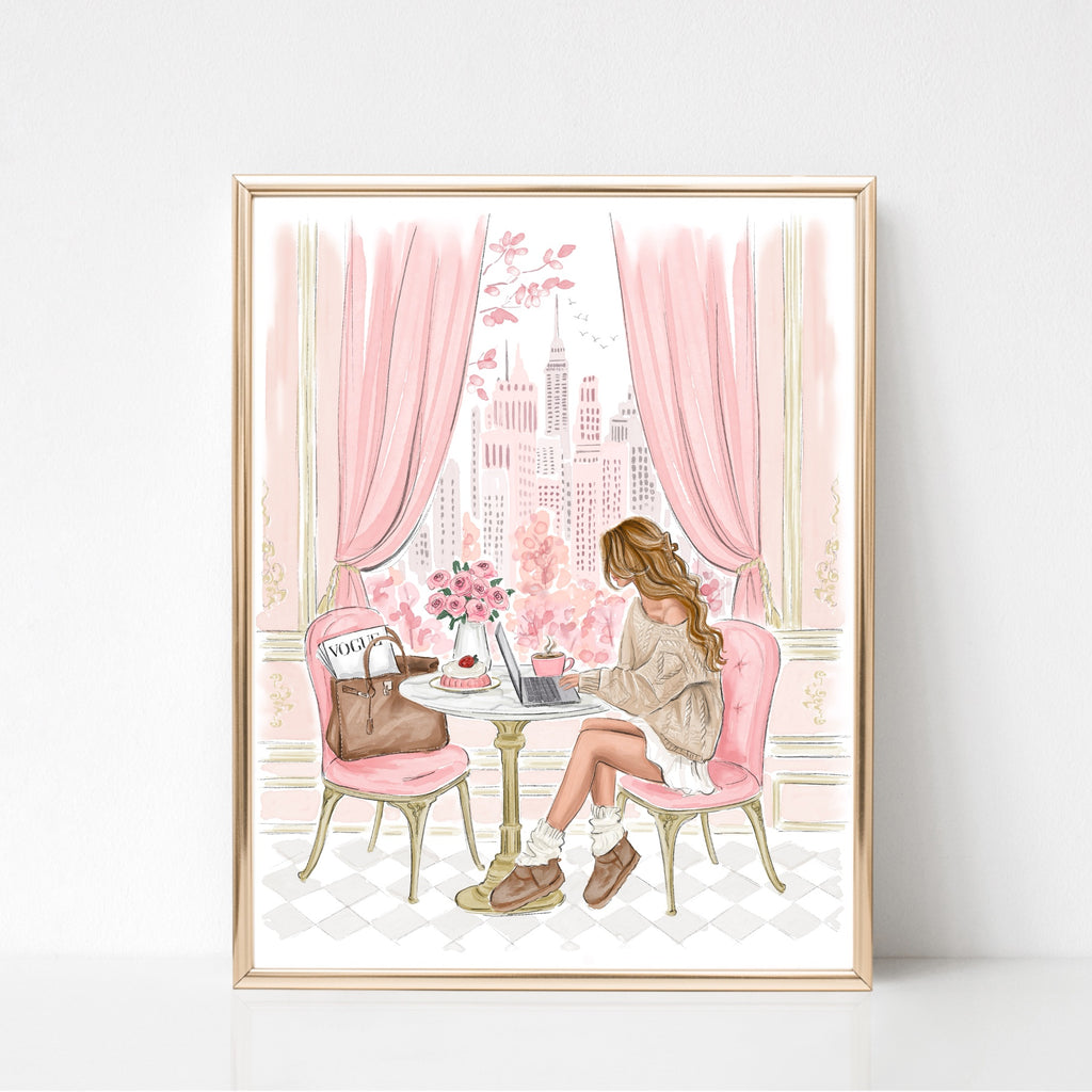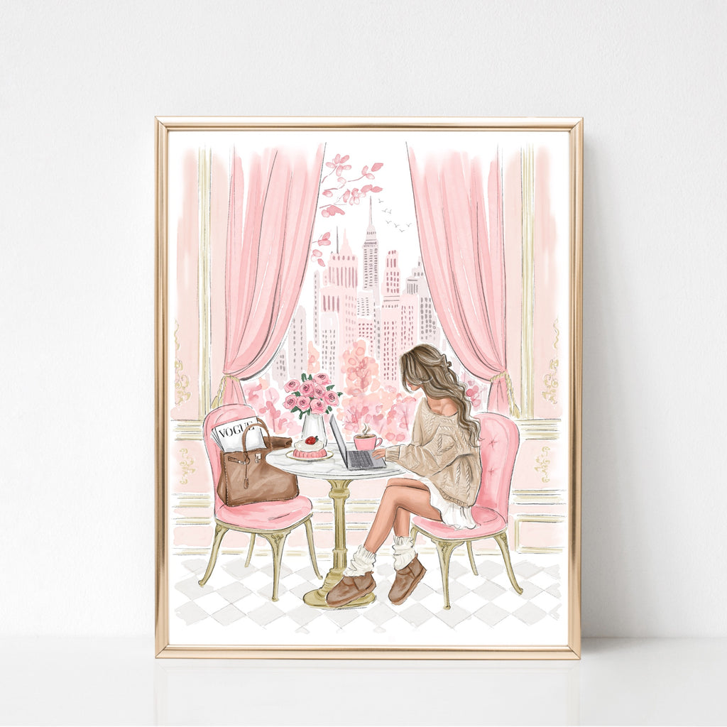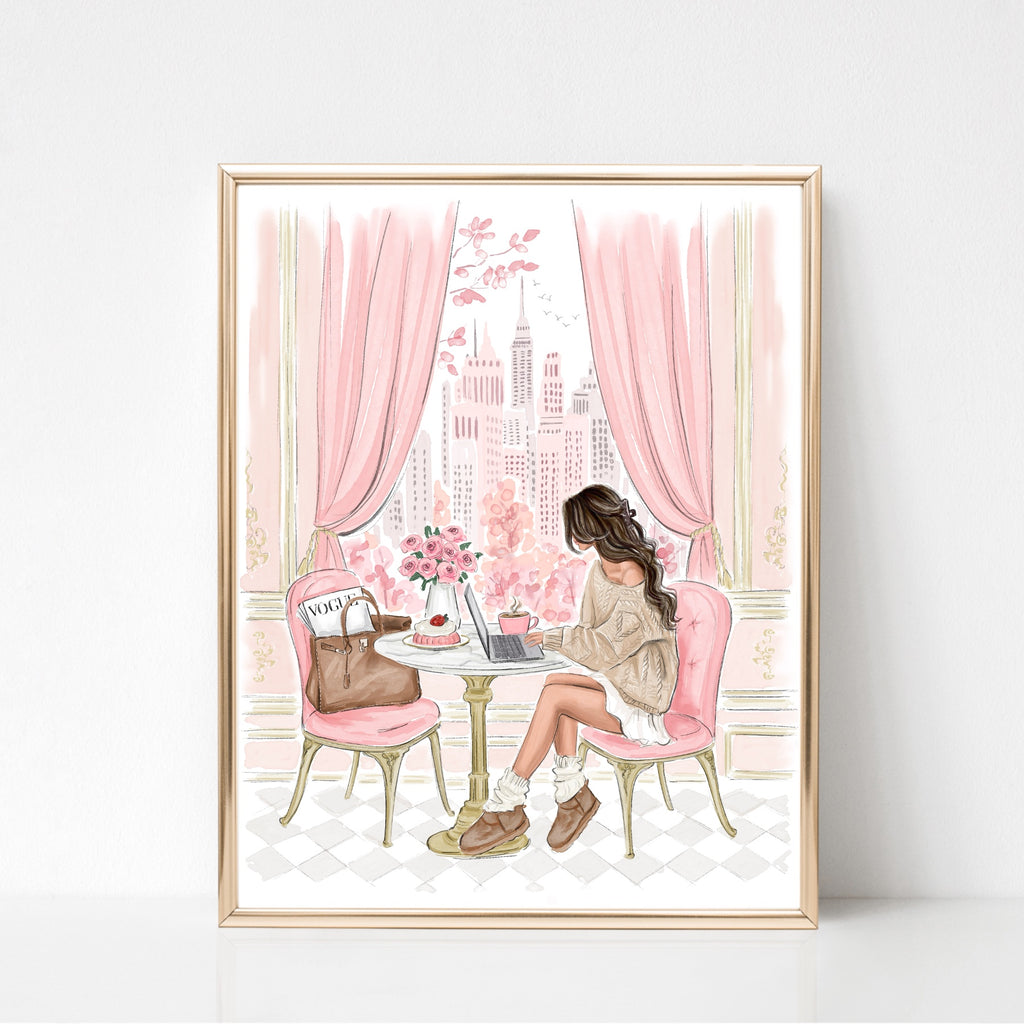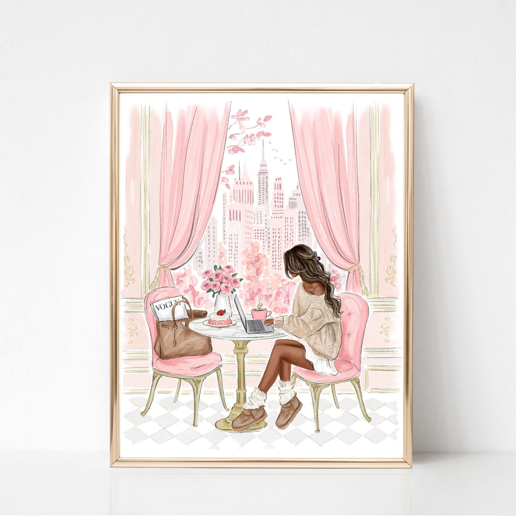 Cozy cafe Watercolor art print fashion illustration